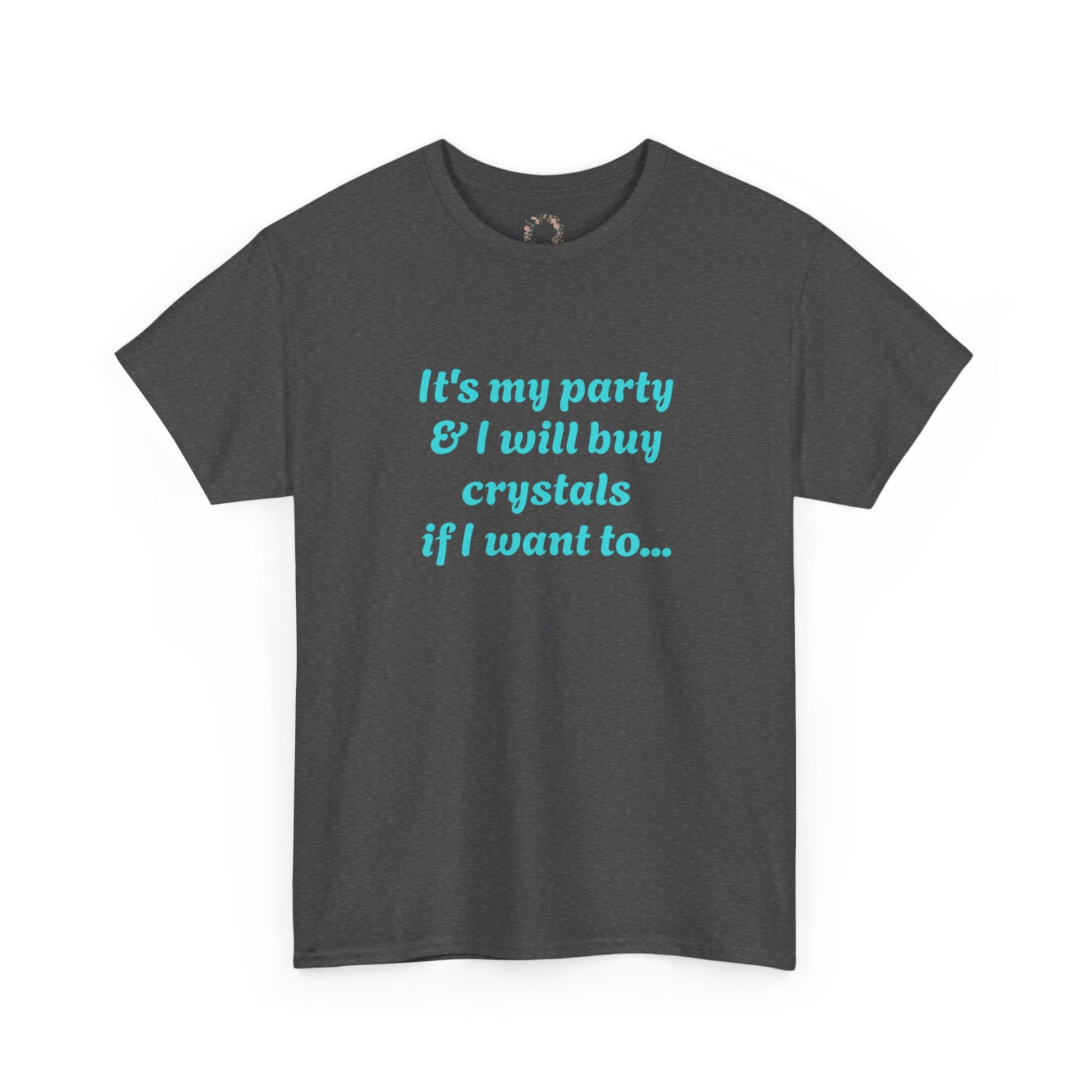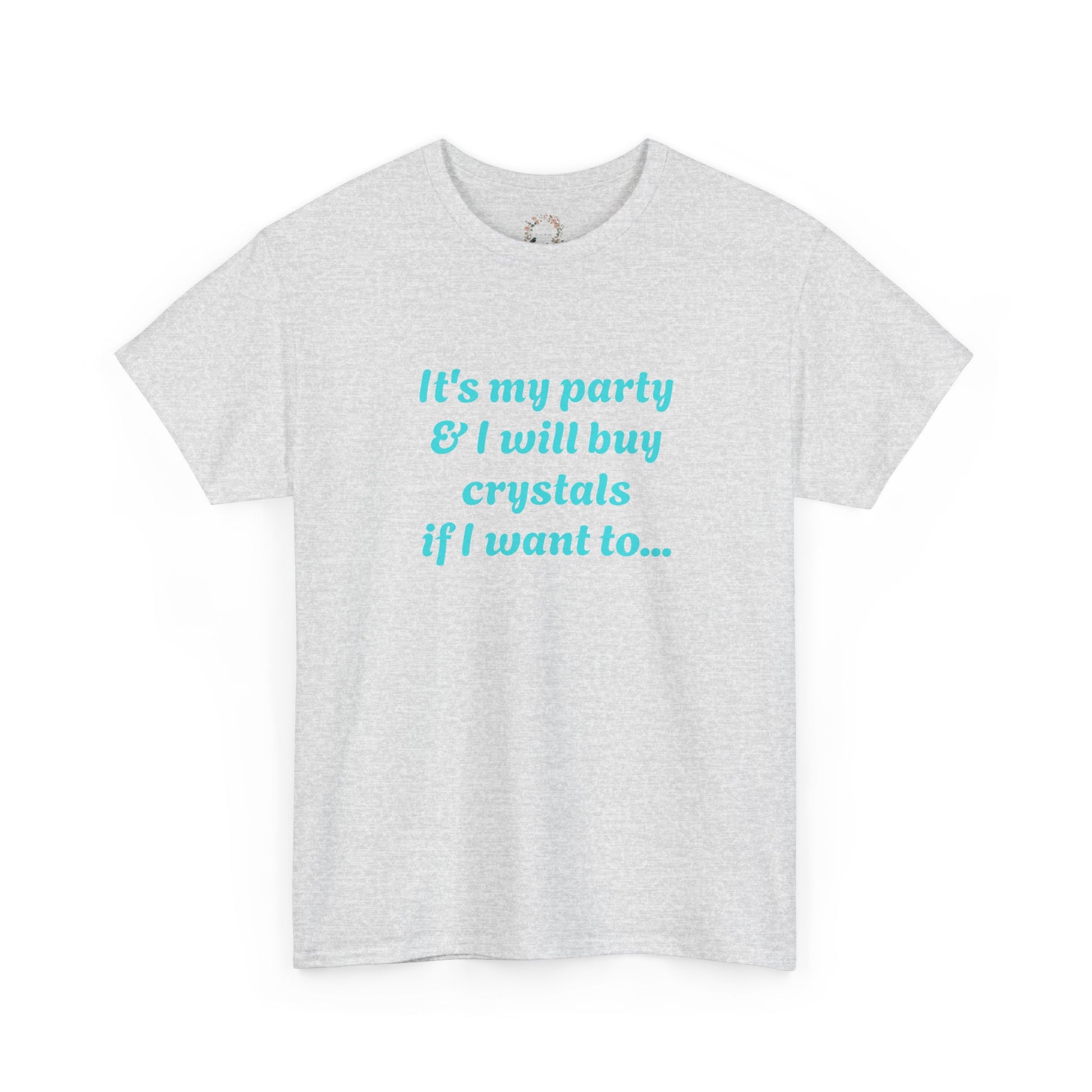 Soft, breathable cotton and a playful crystal-lovers print come together in this relaxed crew tee. The sky-blue text reads like a private mantra — lighthearted, confident, and a little witchy — sitting centered on a clean white canvas. Wear it to low-key gatherings, moonlit shopping runs at your favorite metaphysical shop, or lounging while sorting your next crystal haul. The fabric feels sturdy yet yielding; the ribbed collar and taped shoulders keep the silhouette neat even after many washes. This tee speaks to people who collect intention-filled trinkets, trade tarot tips, or simply enjoy a gentle, mystical vibe in everyday life.
