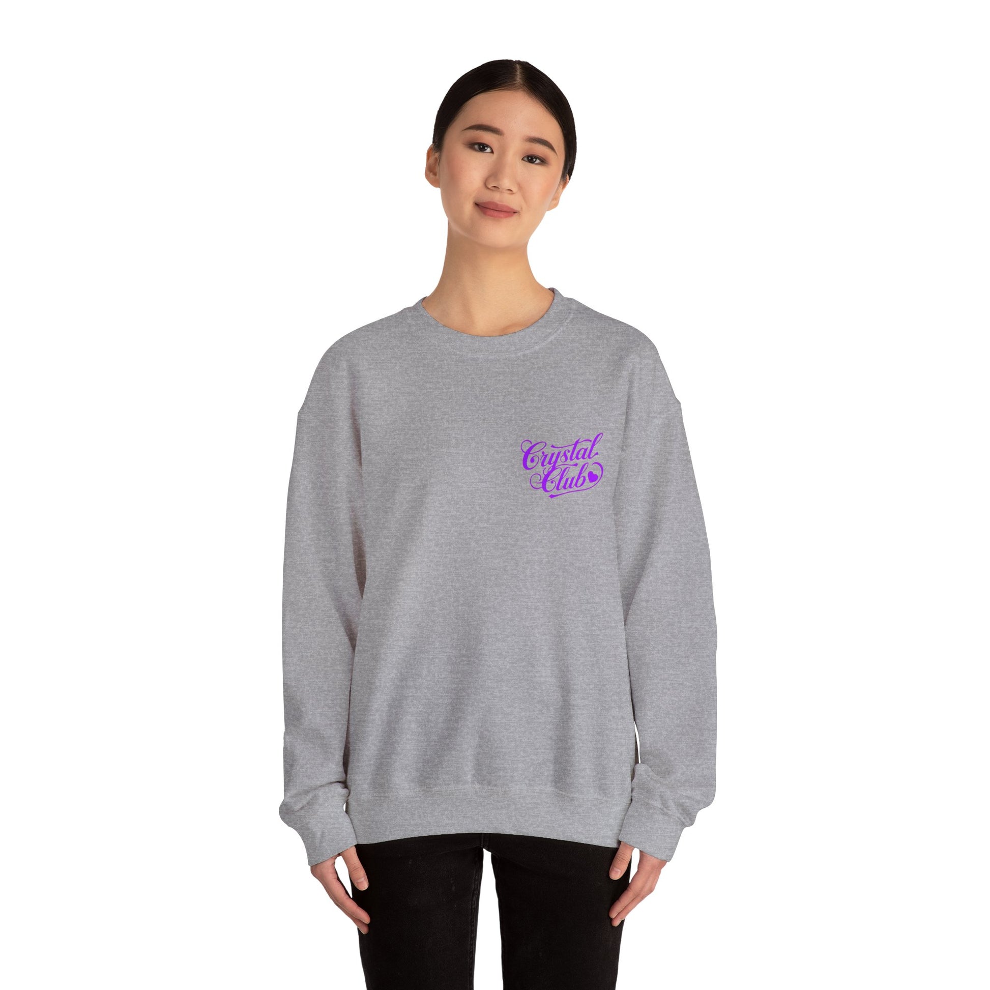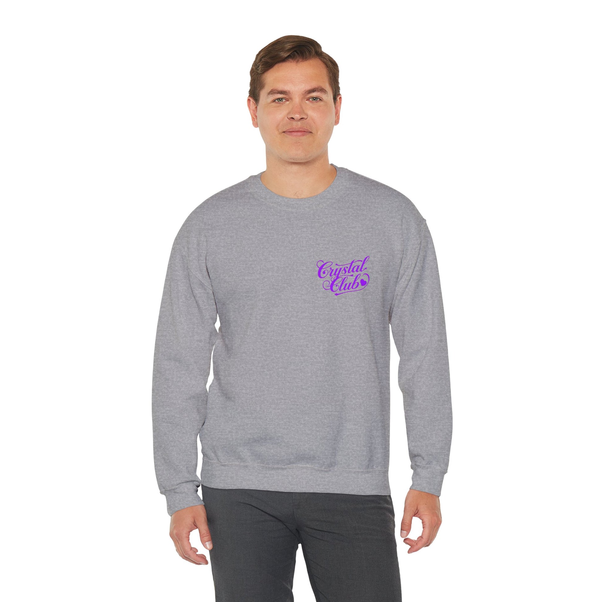 Embrace comfort and style with this Unisex Heavy Blend™ Crewneck Sweatshirt. Perfect for cozy evenings spent with friends or casual days out, it's designed for those who value both fashion and functionality. Featuring eye-catching "Crystal Club" graphics, this sweatshirt exudes a laid-back, trendy vibe. Ideal for social gatherings, birthday celebrations, or just lounging at home. It's a great gift for anyone seeking a comfortable yet stylish addition to their wardrobe, especially during the colder months or as part of seasonal festivities.