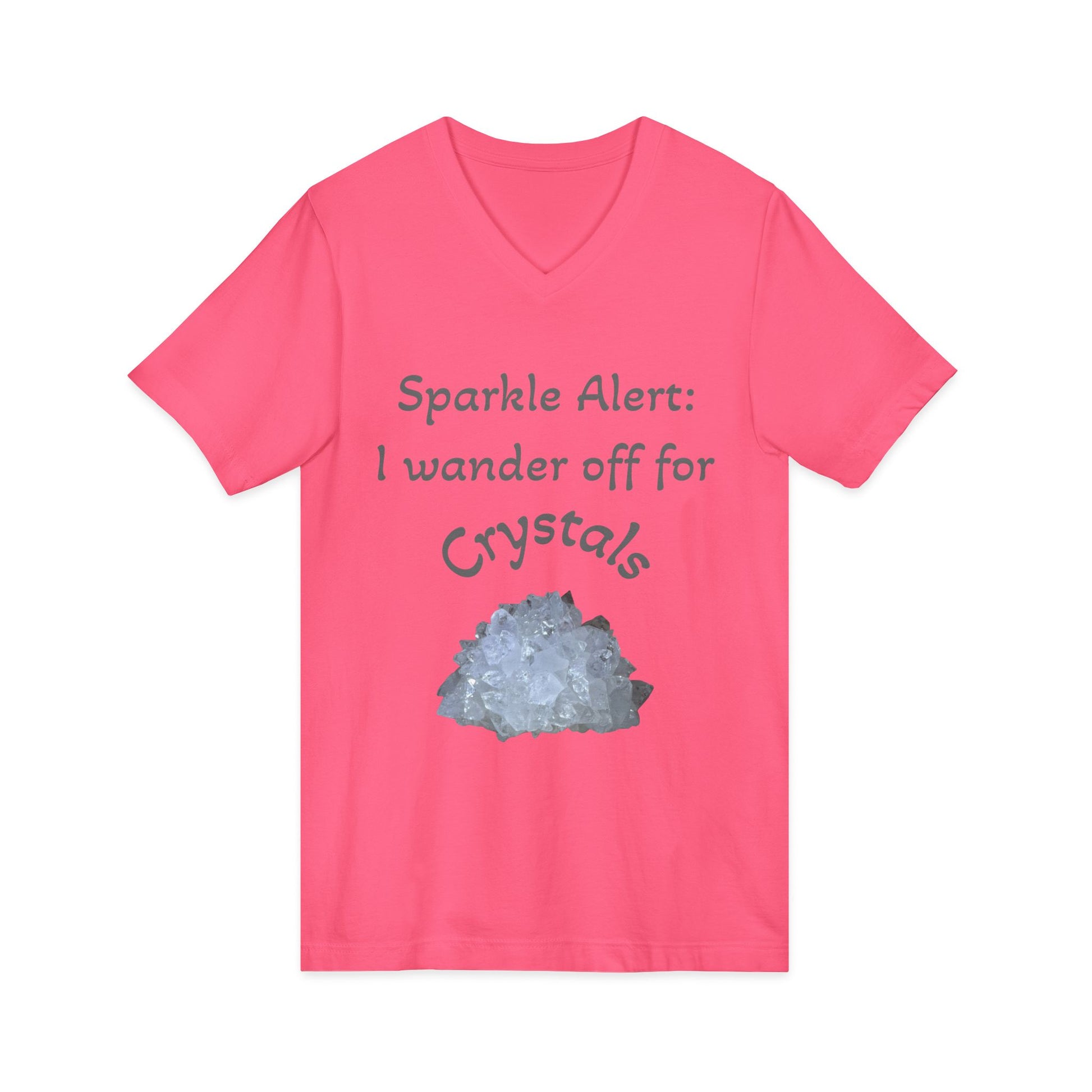 Suzie's "Sparkle Alert: I wander off for Crystals' Women's V-Neck Adult Shirt